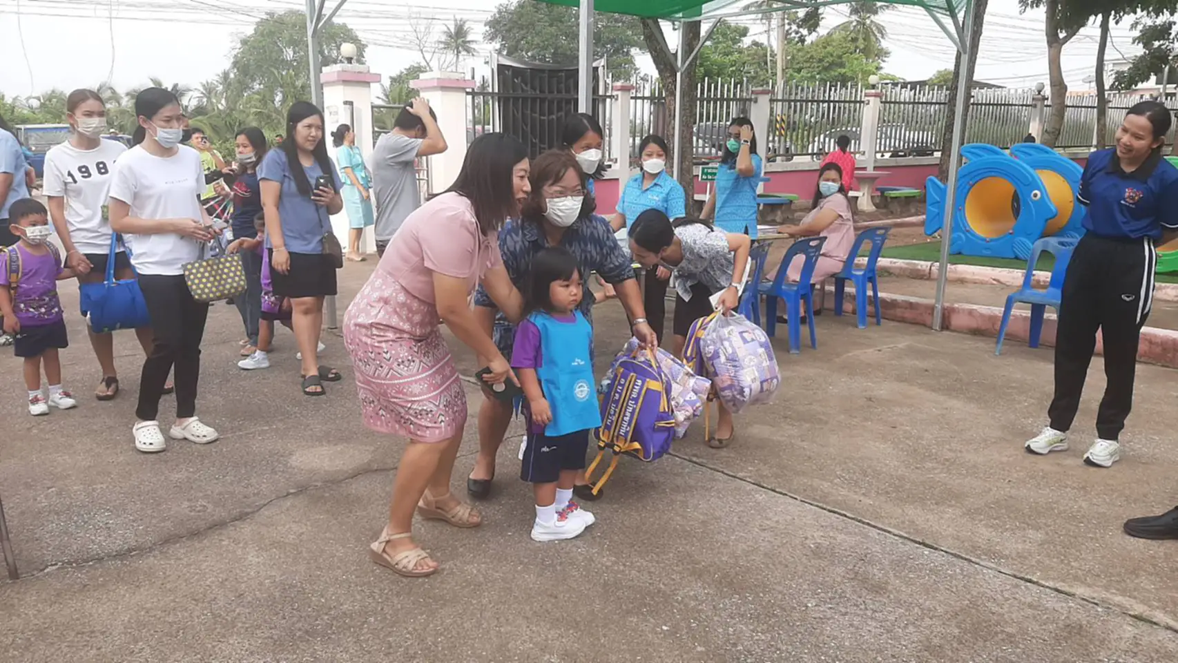 โดยบรรยากาศ เป็นไปด้วยความคึกคักบรรดาผู้ปกครองต่างมาส่งบุตรหลานเข้าโรงเรียนด้วยความเป็นห่วง ขณะที่นักเรียนและคุณครูต่างมีท่าทีที่สดใสพร้อมเข้าสู่การเรียน สำหรับการเปิดเรียนในวันแรก นั่นก็ คือ ภาพของ น้อง ๆ รุ่นเล็ก โดยเฉพาะชั้นอนุบาล 1 ที่เป็นนักเรียนใหม่ ที่จะต้องห่างอกพ่อแม่มาอยู่โรงเรียนเป็นครั้งแรก ทำให้มีภาพน้อง ๆ ร้องไห้กระจองอแง จนเสียงเซ็งแซ่ทั้งห้อง ทำเอาคุณครูต้องช่วยกันปลอบ
