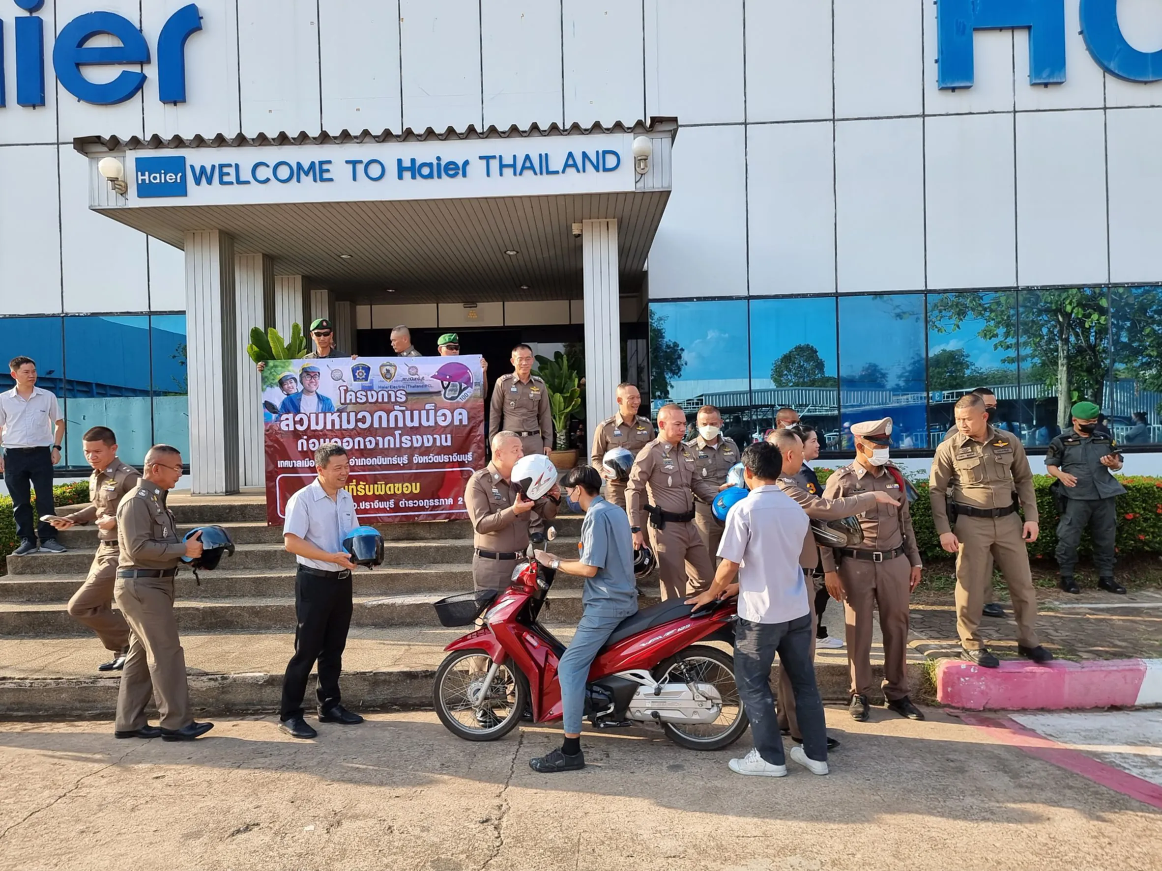 พล.ต.ต.ธีระชัย ชำนาญหมอ ผบก.สส.ภ.2 ฯลฯ ได้ร่วมกันทำกิจกรรมรณรงค์ให้ผู้ขับขี่รถจักรยานยนต์ที่ทำงานในโรงงานในพื้นที่ จ.ปราจีนบุรี สวมใส่หมวกกันน็อค เพื่อช่วยรักษาชีวิต