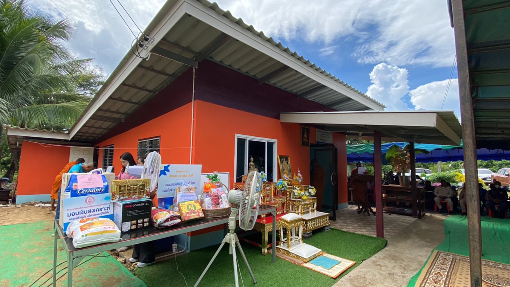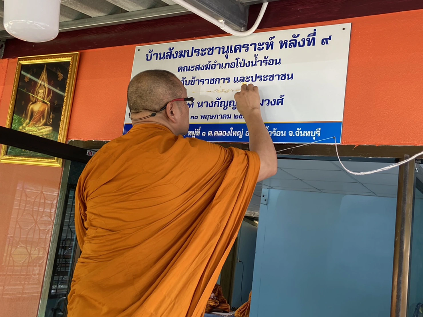 สำรวจแล้วพบว่านางกัญญาเข็มวงอยู่บ้านเลขที่ 149 หมู่ที่หนึ่งบ้านคลองพร้าวตำบลคลองใหญ่อำเภอโป่งน้ำร้อนจังหวัดจันทบุรีเป็นผู้ยากไร้มีรายได้ไม่เพียงพอจะสร้างที่อยู่อาศัยด้วยตนเองได้นำปัญหานี้ปรึกษาต่อคณะสงฆ์อำเภอโป่งน้ำร้อนได้รับการสนับสนุนจากคณะสงฆ์ตามโครงการสังฆประชานุเคราะห์ รวมถึงผู้สนับสนุนอื่นๆได้งบประมาณการสร้างบ้านทั้งหมดจำนวน 153,500 บาท บ้านหลังที่ 9 นี้ ใช้เวลาสร้างรวมทั้งสิ้น 16 วันโดยใช้บุคลากร ช่างจากฝ่ายปกครอง ช่าง อส. ร่วมช่วยกันระดมกำลังสร้างจนแล้วเสร็จและทำพิธีมอบอย่างเป็นทางการในวันนี้
