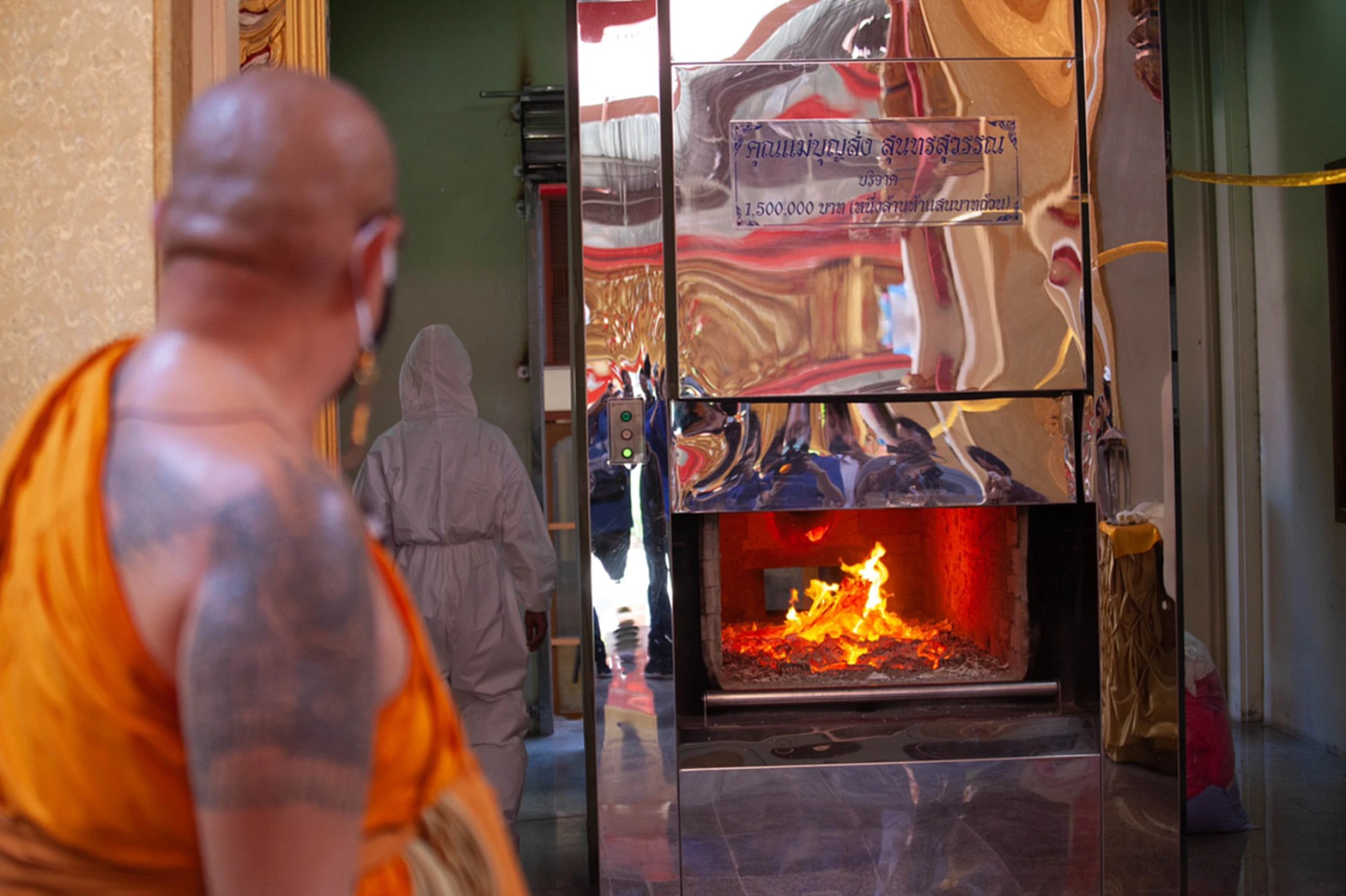 โดยก่อนพิธีการ หลวงพี่น้ำฝน ได้สั่งการให้เจ้าหน้าที่ของวัดไผ่ล้อมและฝ่ายช่างได้สำรวจเตาเผาศพอย่างละเอียดมากขึ้น รวมถึงขณะที่กำลังเผาศพและใช้อุณหภูมิสูงสุดก็ได้ให้ตรวจสอบความร้อนและรอยแตกร้าวที่กำลังเกิดขึ้นหลายแห่งเนื่องจากไม่นานมานี้ขณะที่กำลังทำพิธีเผาศพให้กับผู้เสียชีวิตรายการก่อนหน้ายอดยอดเมรุได้เกิดความเสียหายและที่ยอดของเมรุได้แตกหักลงมาบนหลังคา ทำให้เกิดเสียงดังสนั่นขณะกำลังจัดพิธีซึ่งทำให้เกิดความตกใจของสัปเหร่อและเจ้าหน้าที่ที่กำลังเร่งเผาร่างของผู้เสียชีวิตที่ติดเชื้อไวรัสโควิด-19 ในช่วงนี้ ซึ่งช่วงระยะไม่กี่สัปดาห์ที่ผ่านมาได้ปรากฏรอยร้าวมี่ปล่องเมรุตามมา และเริ่มมีรอยกว้างขึ้นอย่างรวดเร็ว