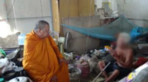 พระครูสังฆรักษ์ สุริยา ถิรสุทโธเจ้าอาวาสวัดวรพรตสังฆาวาส พร้อมด้วยจิตอาสาพระราชทานและเจ้าหน้าที่ อบต.หน้าประดู่ ได้นำข้าวสารอาหารแห้งและน้ำดื่มไปมอบให้กับนายเฉลียว สนองชาลี อายุ 86 ปีอาศัยอยู่ในเพิงพักไม่มีบ้านเลขที่ พื้นที่ หมู่ 3 ต.หน้าประดู่อ.พานทองจ.ชลบุรีหลังทราบว่านายเฉลียวใช้ชีวิตสุดรันทดเพียงลำพังและป่วยเป็นอัมพฤกษ์ครึ่งซีกเมื่อตรวจสอบห้องน้ำพบว่าต้องเดินห่างจากที่นอนประมาณ20เมตรและไม่มีผนังปิดมีเพียงผ้าใบไวนิลห้อยปิดเพียงแค่บังไว้เล็กน้อยเท่านั้นจากการสอบถามนายเฉลียวได้เล่าว่าตนได้อาศัยอยู่คนเดียวเพียงลำพังและป่วยเป็นอัมพฤกษ์ครึ่งซีกและเส้นเลือดตีบกับความดันตนจะไปหาหมอทุกๆ3เดือนตามนัดทุกวันนี้ไม่มีอาชีพอะไรอาศัยเงินที่ได้จากเบี้ยยังชีพและคนพิการประทังชีวิตตัวเองไปวันๆ