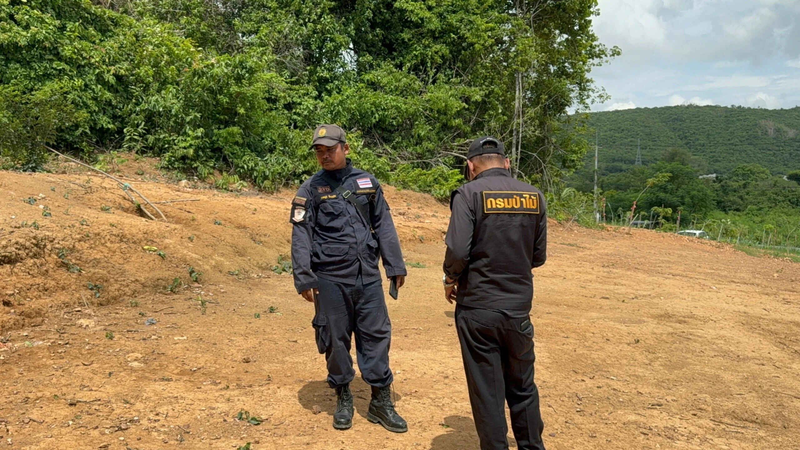 หลังรับแจ้งได้นำกำลังเข้าไปตรวจสอบ โดยที่เกิดเหตุ เป็น บริเวณไหล่เขามีร่องรอยการแผ้วถางป่า และการขุดปรับหน้าดิน เป็นถนนไปทางหลังเขา ระยะทางประมาณ 500 เมตร โดยจากตรวจสอบ ไม่พบเครื่องจักรหรือบุคคล อยู่ในพื้นที่ดังกล่าวแต่อย่างใด