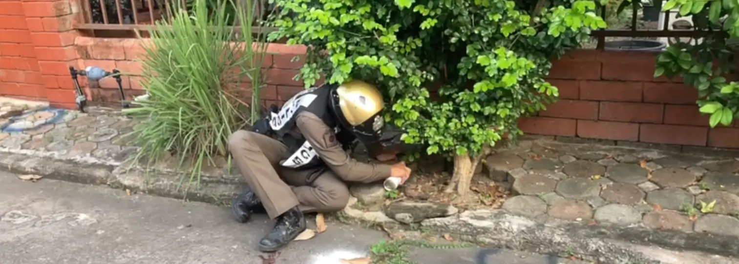 ที่เกิดเหตุเป็นเป็นทาวเฮ้าส์ติดกันหลายหลัง ที่หน้าบ้าน พบกองเลือดจำนวนมาก และปลอกกระสุนปืนขนาด .380 ม.ม.ตกอยู่เกลื่อนพื้น จำนวน 6 ปลอก ส่วนคนเจ็บทราบชื่อคือ น.ส.กุญช์ภัสส์ อายุ 39 ปีได้รับบาดเจ็บ ถูกคมกระสุนยิงเข้าที่ขาซ้าย 1 นัด และศีรษะแตก เลือดไหลอาบ มาขอความช่วยเหลือกับเพื่อนบ้าน เจ้าหน้าที่ตำรวจจึงใช้โปลิสลาย กั้นห้ามผู้ไม่เกี่ยวข้องเข้าใกล้ที่เกิดเหตุ พร้อมให้เจ้าหน้าที่กู้ภัยฯ ปฐมพยาบาลเบื้องต้น ก่อนเคลื่อนย้ายส่งโรงพยาบาล