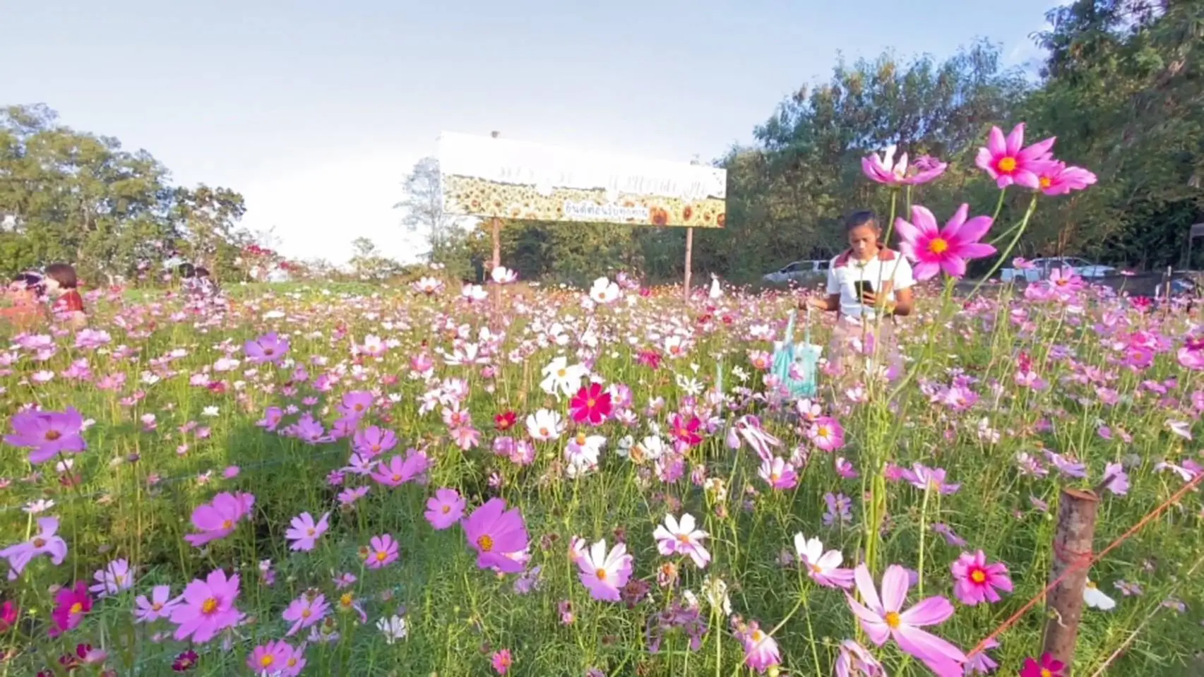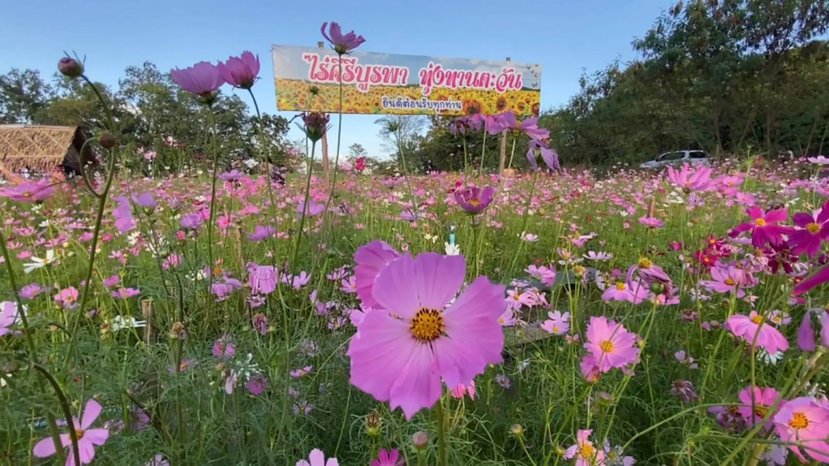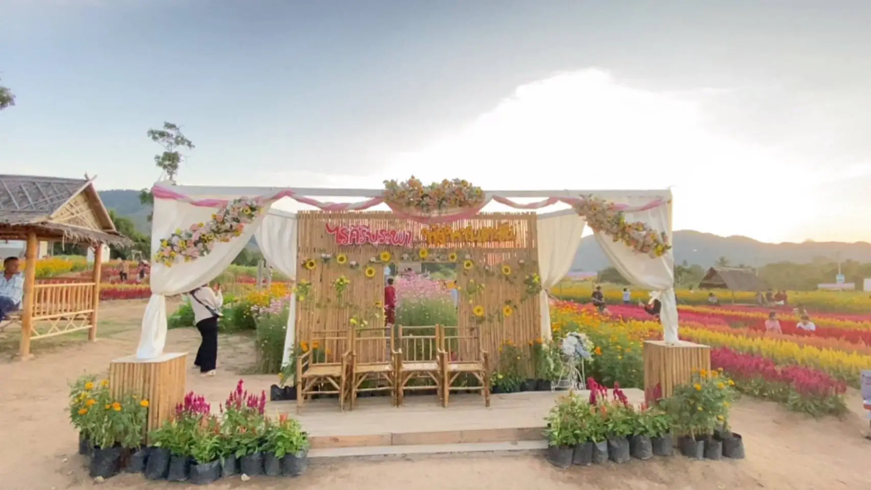 ทางด้านคุณจิราพร ทรงแสงธรรม อายุ 53 ปี เจ้าของสวนดอกไม้เล่าให้ผู้สื่อข่าวฟังว่า เมื่อ 7 ปีที่แล้ว เริ่มปลูกดอกทานตะวัน บนเนื้อที่ 30 ไร่ เห็นว่าที่ดินรกร้างไม่ได้ใช้ประโยชน์ ประกอบกับช่วงเวลานั้นมีการก่อสร้างถนนสายหลัก ทำเอาการจราจรหนาแน่นผู้ใช้รถต่างใช้เส้นทางเลี่ยงเลียบเขาจากตัวอำเภอบ้านบึงเข้าตัวเมืองชลบุรีได้เห็นไร่ดอกทานตะวันจึงแวะจอดถ่ายภาพและในปีต่อๆมาจึงเพิ่มพันธุ์ไม้มากขึ้นเรื่อยๆกระทั่งเป็นที่นิยม โดยจะเปิดให้เข้าชมช่วงปลาย้ดือนพฤศจิกายนไปจนถึงปลายเดือนมกราคมของทุกๆปีโดยนักท่องเที่ยวสายธรรมชาติแวะมาถ่ายรูปสวนดอกไม้ ตะวันลับทิวเขา ช่วงเย็น