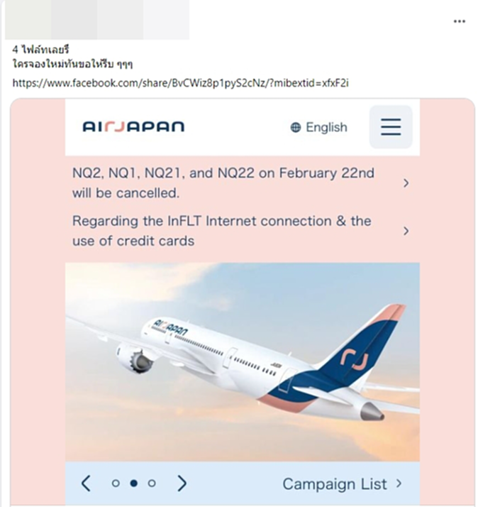 จากกรณีที่สายการบิน Air Japan ได้ยกเลิกไฟลท์บินกะทันหัน ทำให้ผู้โดยสารที่ต้องการเดินทางไปประเทศญี่ปุ่นไม่สามารถเดินทางได้ รวมถึงผู้โดยสารที่ประเทศญี่ปุ่นต้องการเดินทางกลับไปประเทศไทยตกค้างอยู่ที่ประเทศญี่ปุ่นนั้น