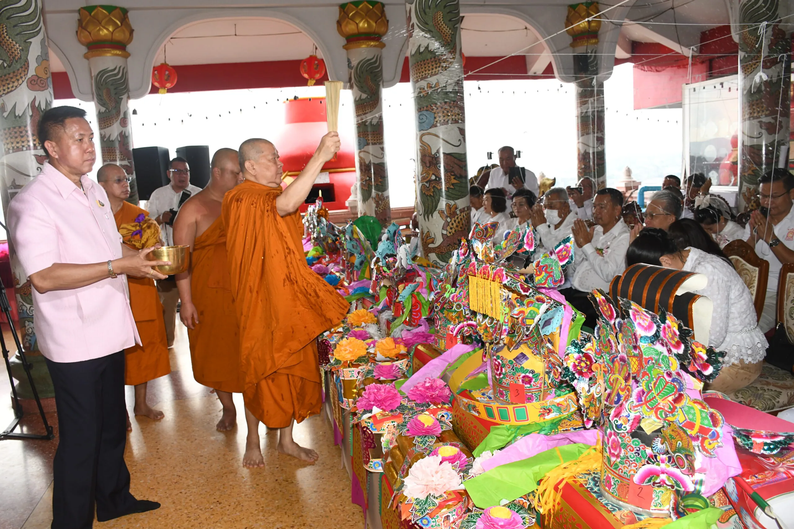 พิธีไหว้เจ้าพ่อเขาใหญ่ เกาะสีชัง ผู้ประกาศ ผู้ว่าราชการจังหวัดชลบุรี เป็นประธานฝ่ายฆราวาส ในพิธีไหว้เจ้าพ่อเขาใหญ่ เกาะสีชัง