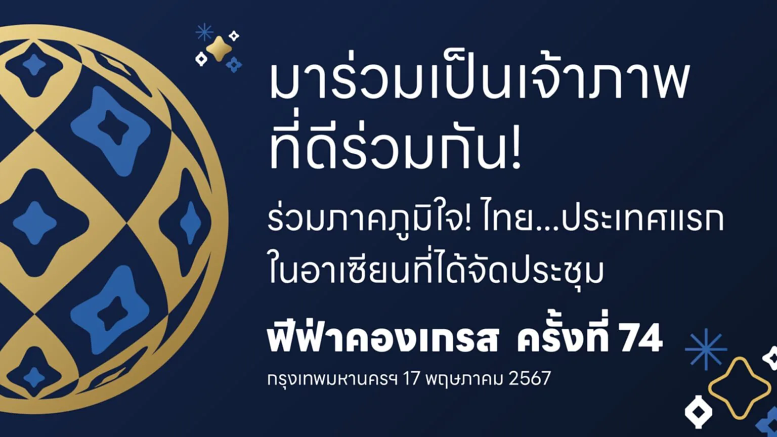 สมาคมกีฬาฟุตบอลแห่งประเทศไทยฯ ยืนยันความพร้อมเต็มที่ในฐานะ เจ้าภาพจัดการประชุม ฟีฟ่า คองเกรส ครั้งที่ 74 หลังปล่อย Key Message เชิญชวนคนไทย มาร่วมเป็นเจ้าภาพที่ดี และ ภาคภูมิใจร่วมกัน ตั้งแต่วันที่ 13-17 พฤษภาคม 2567