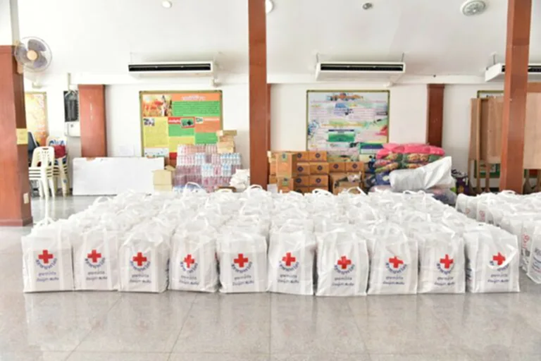 เพื่อเป็นการบรรเทาความเดือดร้อนเบื้องต้นให้แก่ประชาชน เหล่ากาชาดจังหวัดฉะเชิงเทรา จึงขอสนับสนุนชุดธารน้ำใจ สภากาชาดไทยชุดธารน้ำใจ ภายในถุงบรรจุด้วย บะหมี่กึ่งสำเร็จรูป ปลากระป๋อง ปลาราดพริก ผักกาดดอง ข้าวหอมมะลิกระป๋อง 150 กรัม ไข่พะโล้ใส่ไก่ เครื่องดื่มช็อกโกแลตผง 3in 1 น้ำพริกปลาทูน่า ข้าวสาร 100% 5 กิโลกรัม โลชั่นกันยุง เทียนไข ไฟแช็คกระบอกไฟฉายพร้อมถ่าย ถุงขยะดำใหญ่พับ 6 ใบ ถุงขยะดำเล็กพับ 6 ใบ ยาชุดสามัญประจำบ้าน เกลือไอโอดีน ยาทาแก้น้ำกัดเท้า และน้ำดื่ม 600 cc จำนวน 1,323 ชุด พร้อมน้ำดื่ม 1,323 แพ็ค